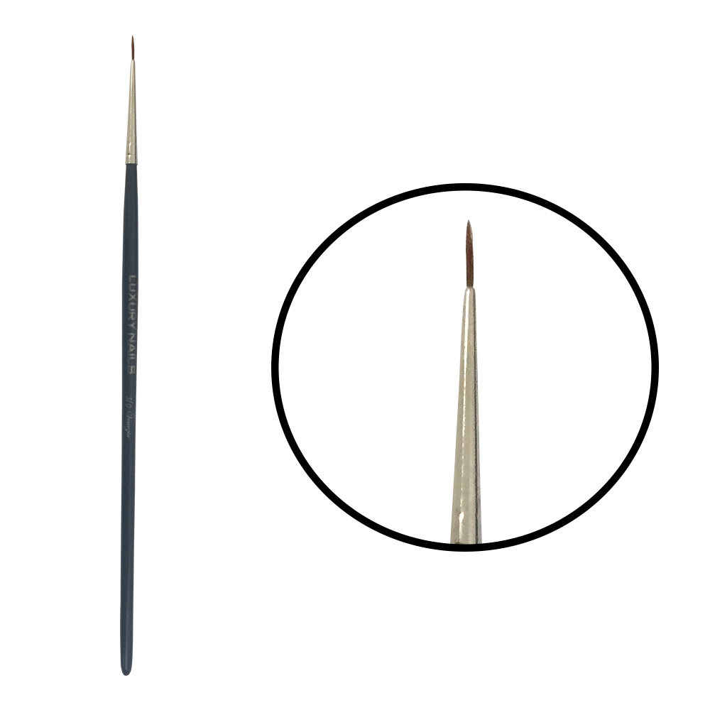 Pennello in setole naturali con manico in legno laccato nero per realizzare tratti ultra sottili; ideale per micropittura, french e nail art veloci da salone con Gel Paint. Lunghezza media.